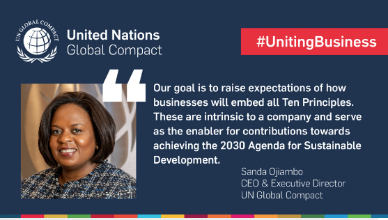 Our ambition is to: Accelerate and scale the global collective impact of business by upholding the Ten Principles and delivering the SDGs through accountable companies and ecosystems that enable change.