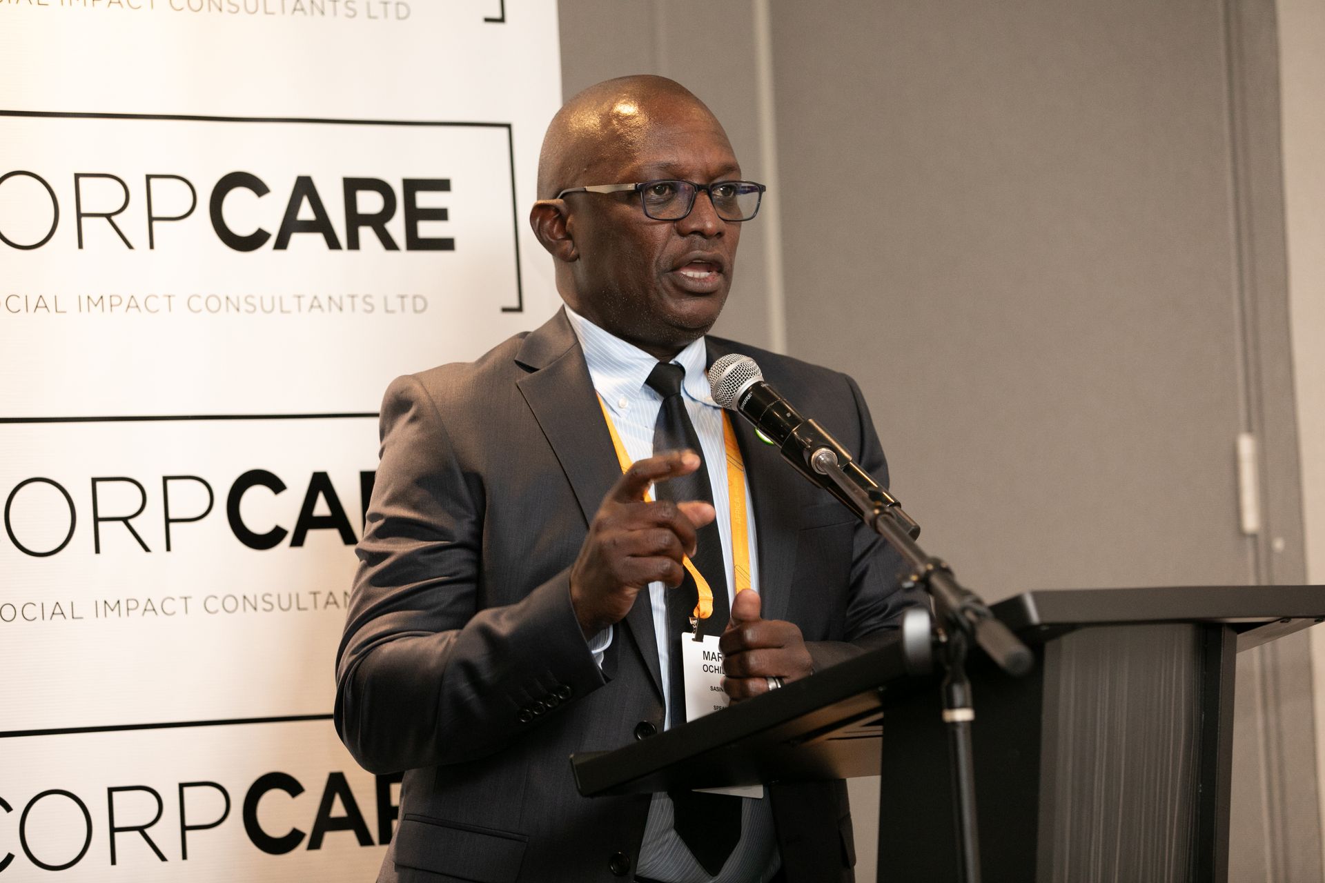 Martin Ochien'g, Group Director, Sasini Plc delivers a keynote, prior to Sanda Ojiambo, ASG & CEO of the UN Global Compact welcoming Prime Minister Mia Mottley